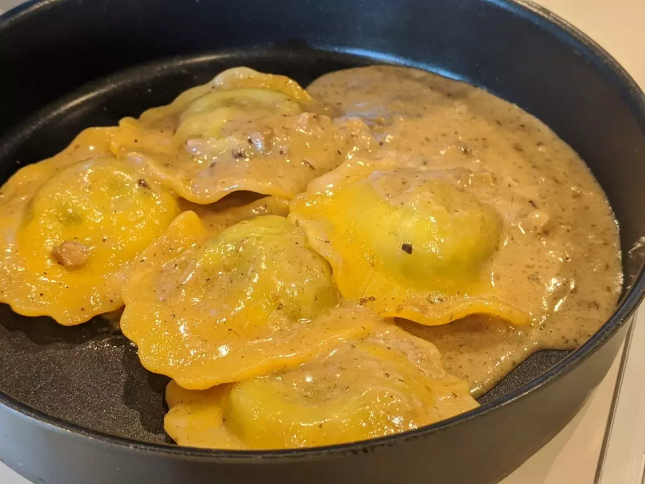 リコッタのラヴィオリは1袋、145gという容量。とろりとしたクリームとバゲットの相性はとてもいい。どちらもちょっとした高級イタリアンで贅沢な食事を楽しんでいるというくらいに味がいい。冷凍だから味が落ちるという常識は、一昔前のことなのかもしれない。