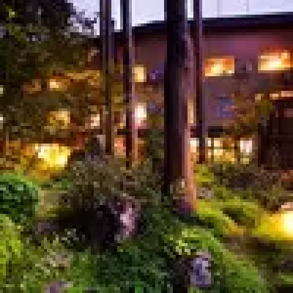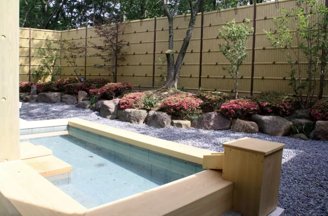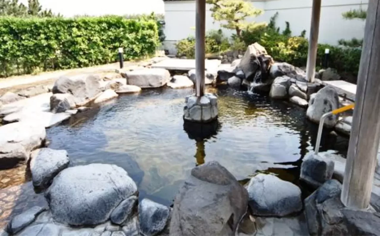 にあります。「潟の湯」・「森の湯」 2 つの浴室と「まちカフェ」があり、 2F のオープンテラスからは夏の華やかな花火大会や、四季折々の自然景観を楽しむこともできます。