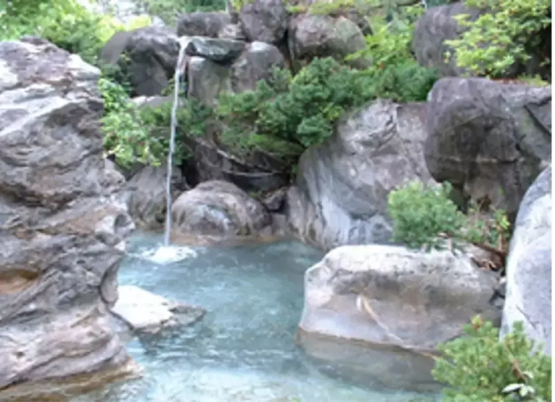 一里野温泉の湯は、岩間温泉から引き湯をしており、無色透明でほんのり硫黄のする香りのする天然の湯。まろやかな湯触りで体の芯まで温めてくれ、湯冷めもしないと評判です。