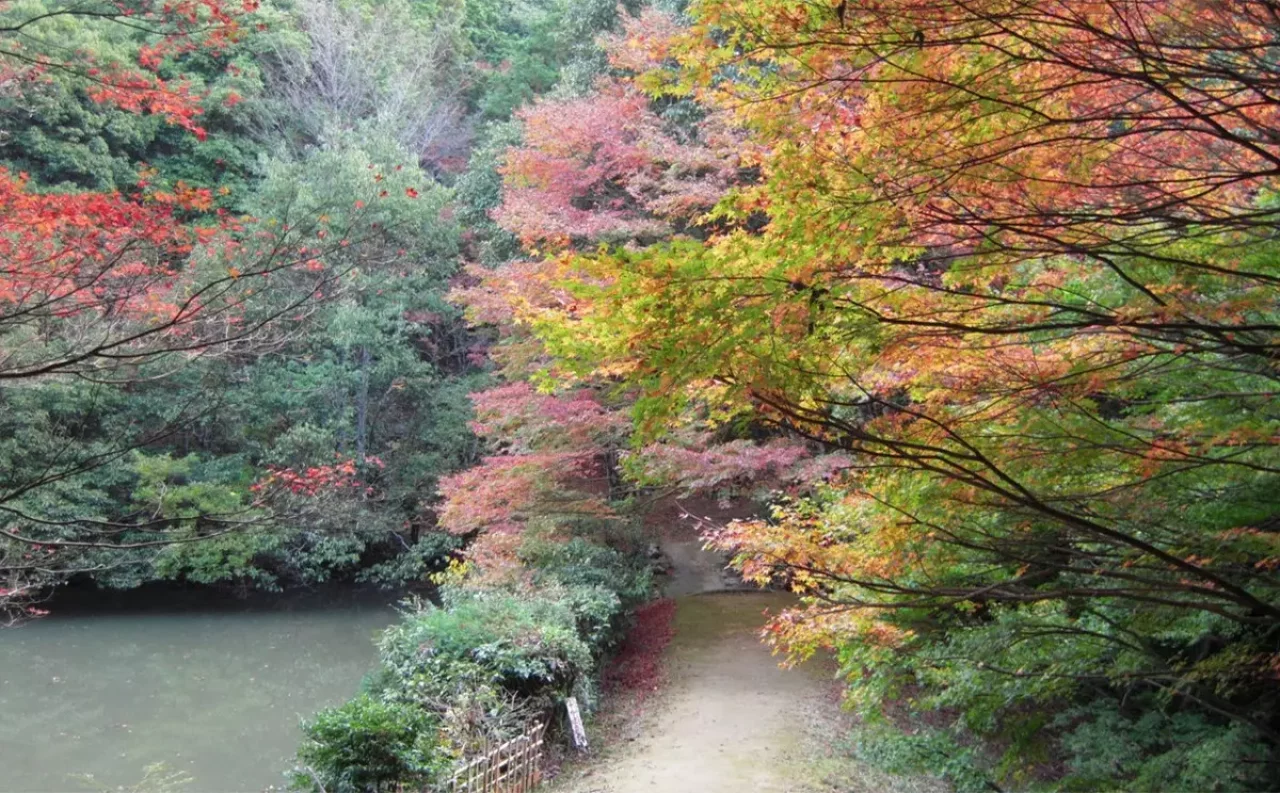 臼杵市の名勝に指定された白馬渓は臼杵川上流の支流にある渓谷です。秋の紅葉は清流を虹色に染め、訪れた人々を魅了します。紅葉の名所がある大きな池までは高低差があり、葉が色づく時期に差が生まれるため、道を奥へ進みながら紅葉のグラデーションを楽しむことができます。