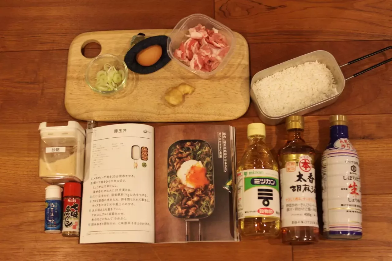 ご飯の上に炒めた豚肉をのせて半熟卵を載せれば同じような豚玉丼ができると思いますが、メスティンだと炊飯ついでに豚肉にも火を通して、放っておけば出来上がりというとっても簡単で美味しいレシピです
