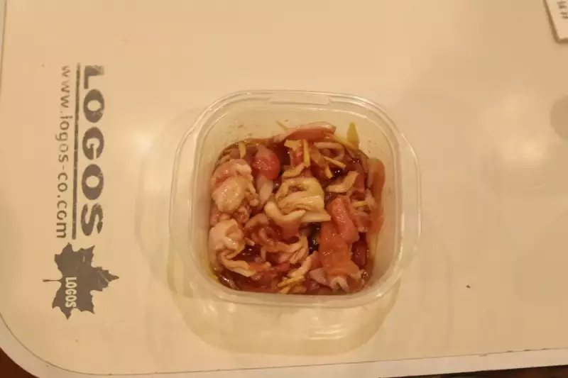 生姜は千切りにして、醤油、砂糖、酢、ごま油、塩を投入しジップロックの中に入れて手でモミモミしておきます。
