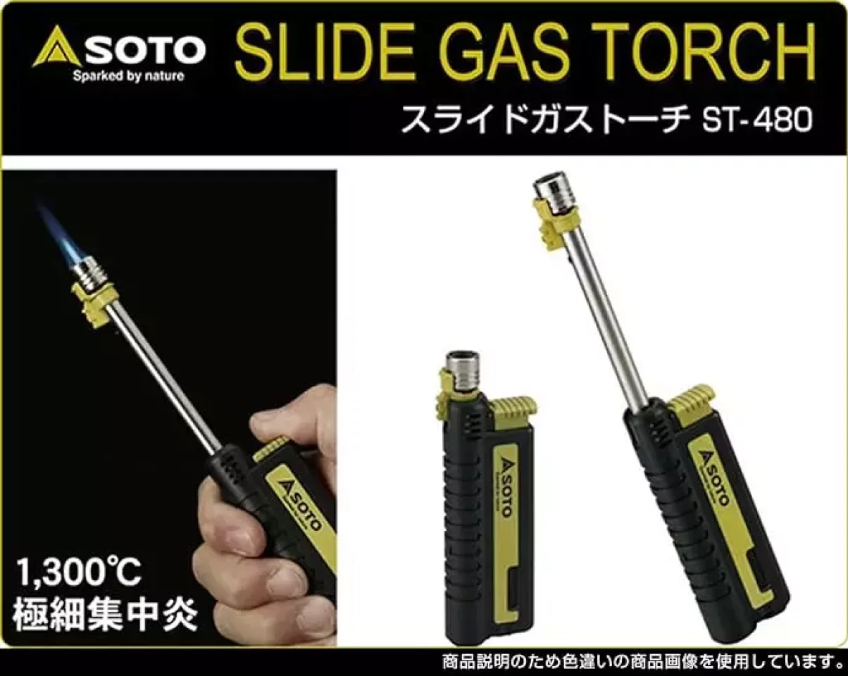 火口がのびる小型耐風バーナーで、野営時において奥の火種に着火させるのに便利です。使用時は伸ばして安全に、収納は縮めてコンパクトになるので、クッカーなどに仕舞っておけます。