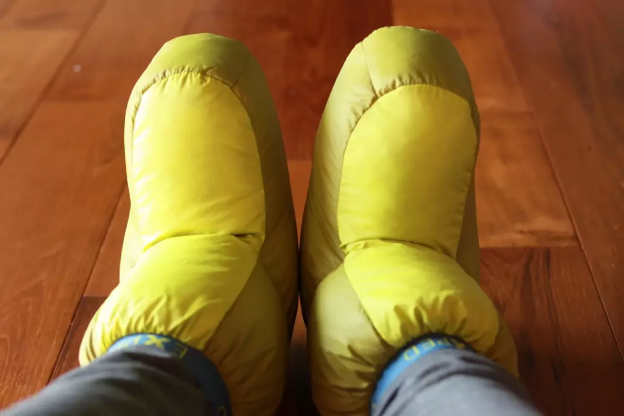履いた瞬間からポカポカとする保温力はテント泊だけで使うにはもったいないので、日常からもスリッパのように履いています。