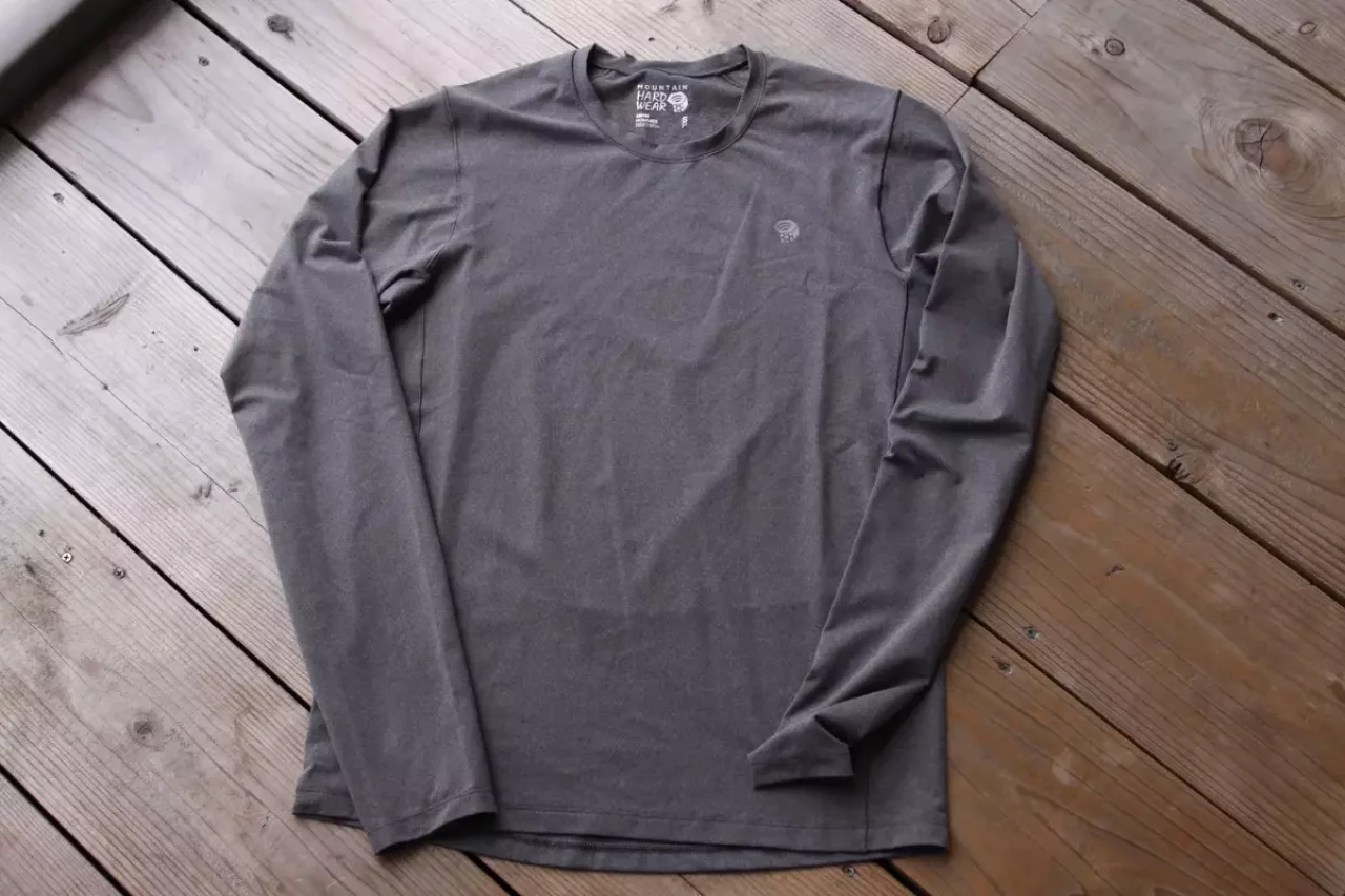 ハードなアクティビティ、例えばトレールランニングやファストハイクなどではより透湿性に優れたベースレイヤーを取り入れますが、マウンテンハードウェアのギーロングスリーブは、低山ハイクおいての行動着、登山終わりのベースレイヤーとして活用しています。