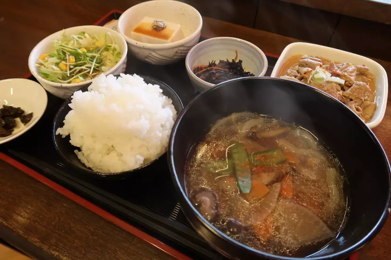けんちん汁にモツ煮、美味しいご飯と大満足の「モツ煮定食」