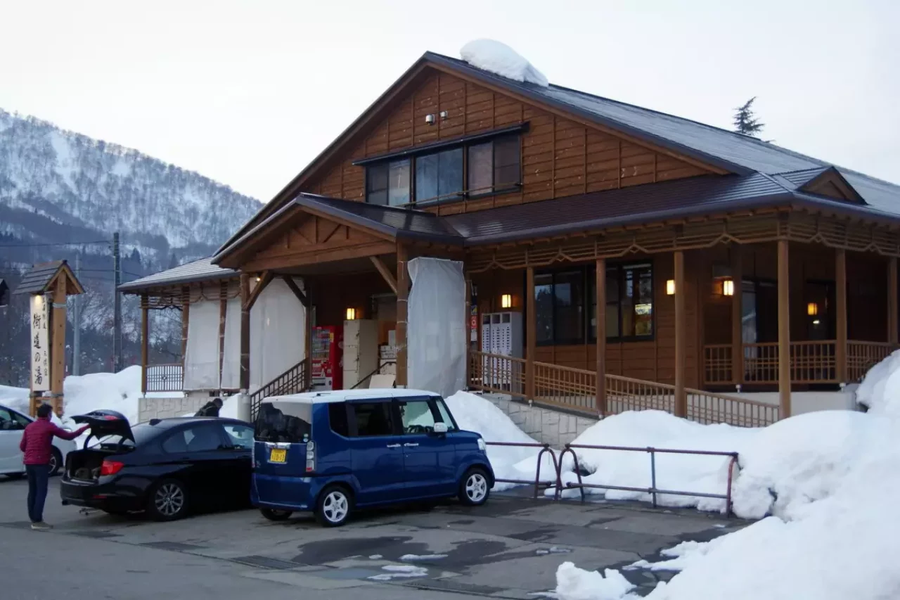 道の駅みつまたに隣接する「街道の湯」はゆったり30人ほどが入浴できます。今の時期、雪を眺めながらの岩造り露天風呂は至福の時間なのです。