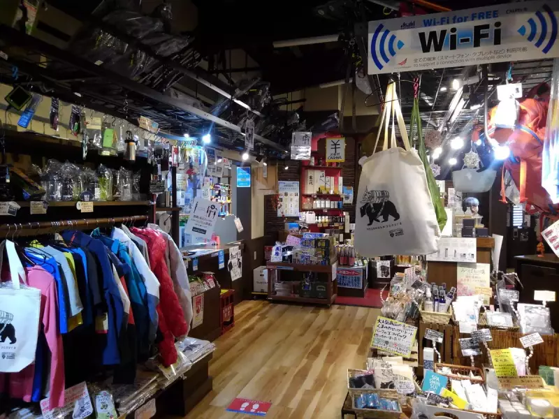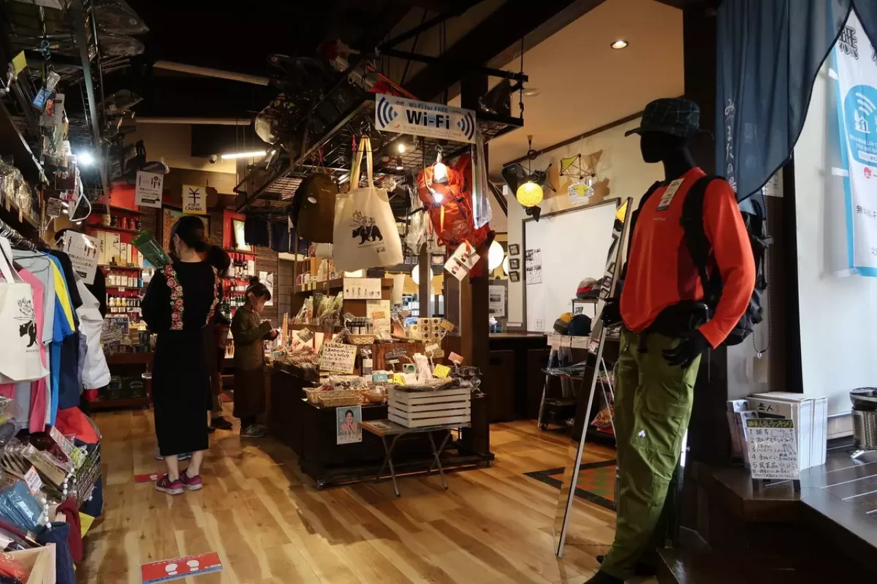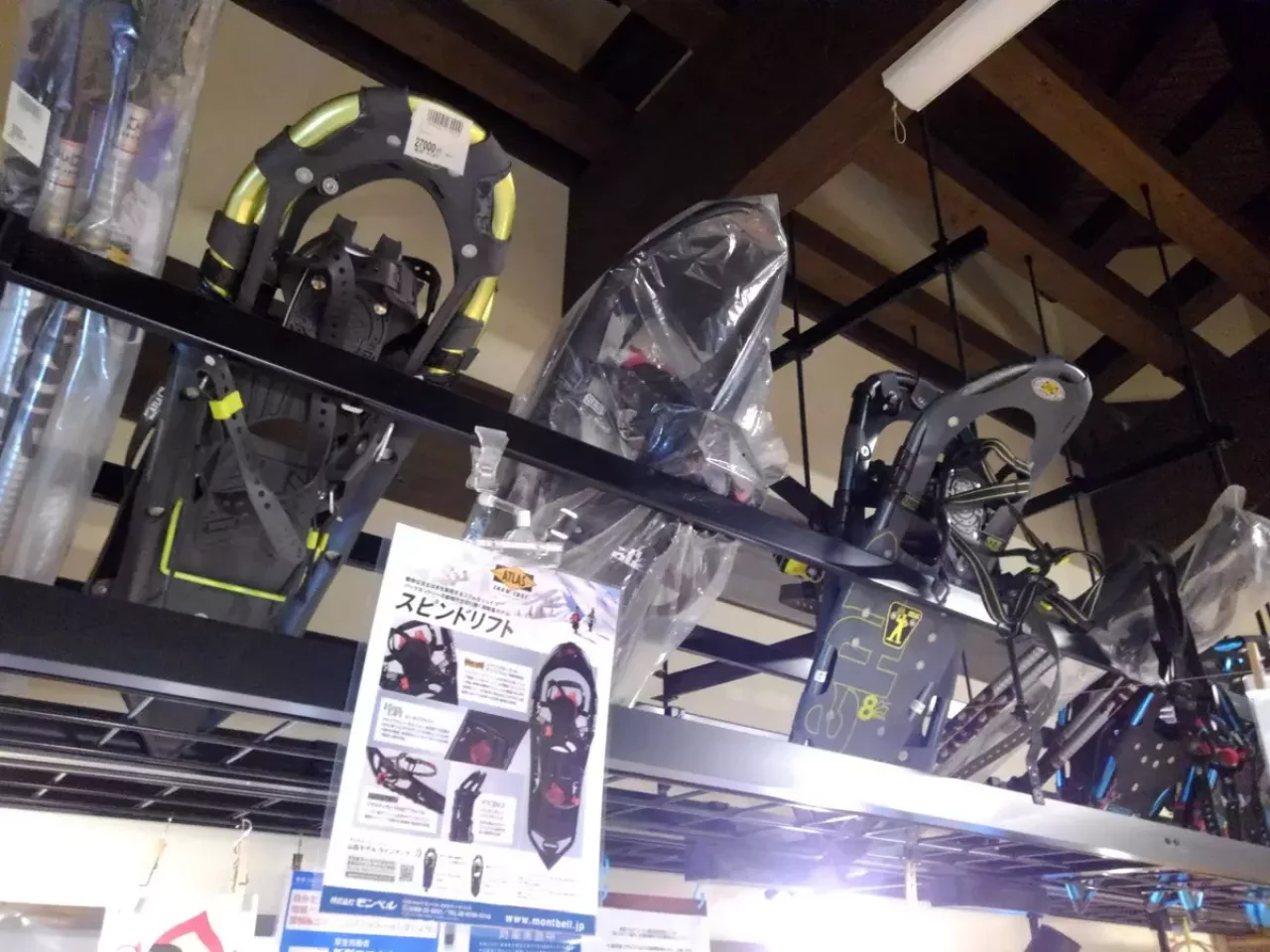 お忘れ物はありませんか?苗場山や谷川山系トレッキングの玄関口に便利なモンベルのアウトドア商品コーナー。バックカントリーへの備えも手に入る、これも道の駅みつまたならでは。