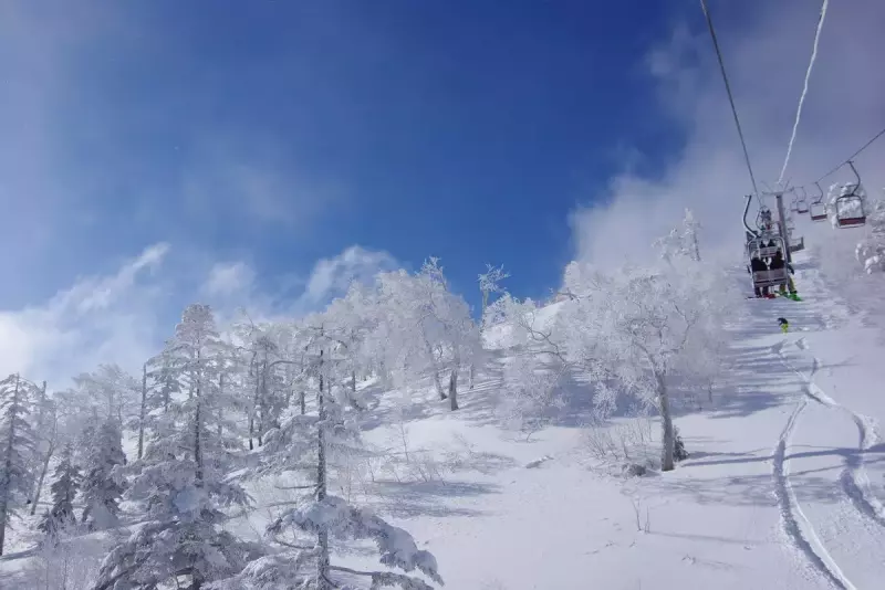 かぐらスキー場の奥、第5ロマンスリフト。降雪後は粉雪を求めてスキーヤー・スノーボーダーが押し寄せます。