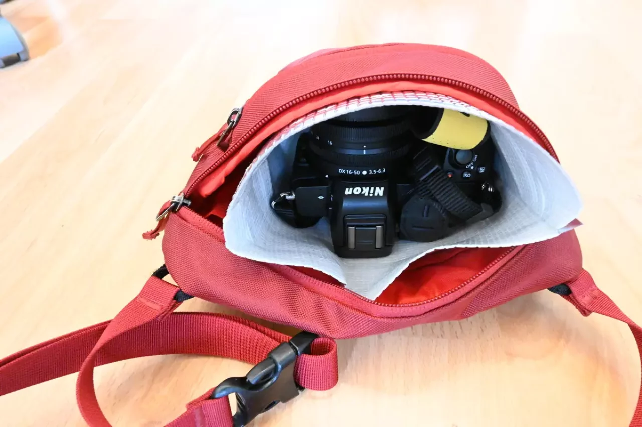 またカメラ本体は、100均で手に入れた保冷袋をカメラのサイズに合わせて DIY を施し、それをアークテリクスのマンティス2の中に入れてカメラバッグとして持ち歩いた。