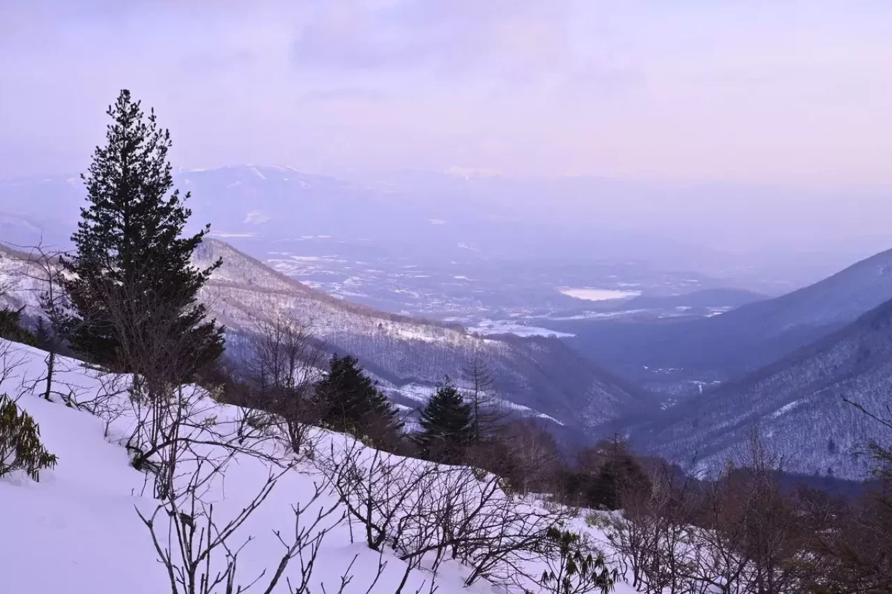 登山道の右側には四阿山と草津白根山が見渡せる。この景色は素晴らしく、夏とは全く違った雪が織りなす景色に惚れ惚れする。