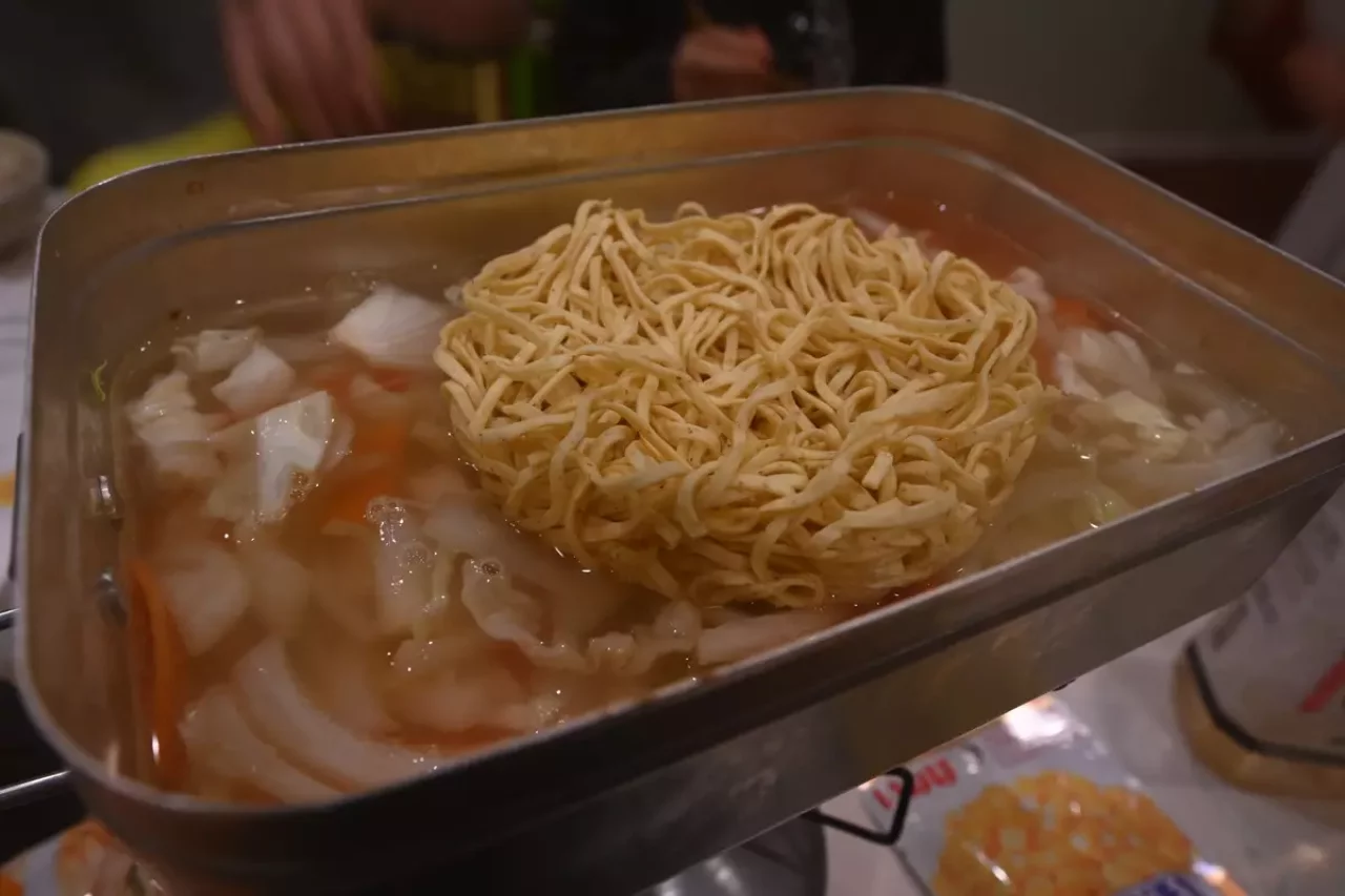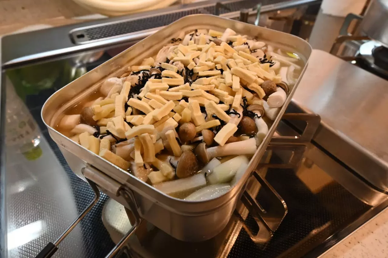 火が通ったらお水を入れて蓋をし、沸騰したら辛ラーメンについている調味料を投入します。ラーメンは最後の締めに使用すれば良いでしょう。