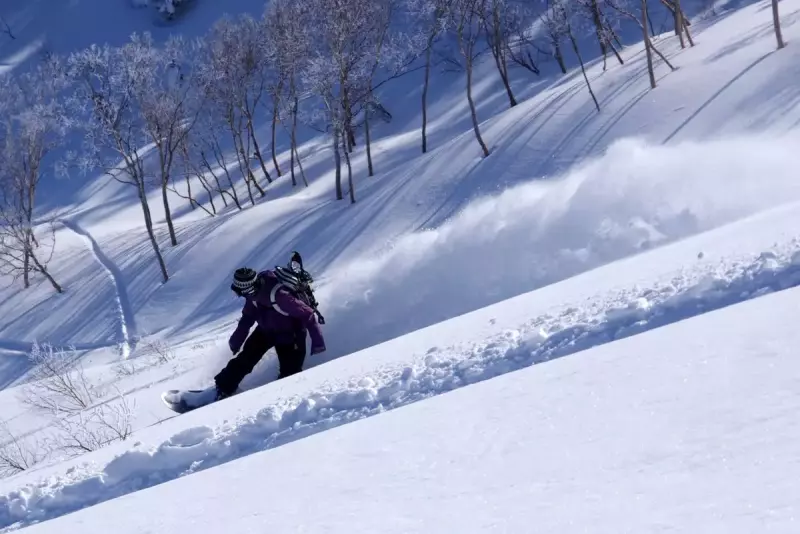 行動前の7時、バーナーで沸かした湯を入れ95.8度からスタート。もちろん、測定時間の昼までパウダースノーを遊びます。