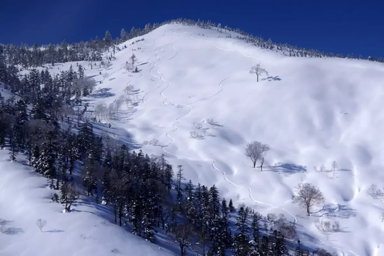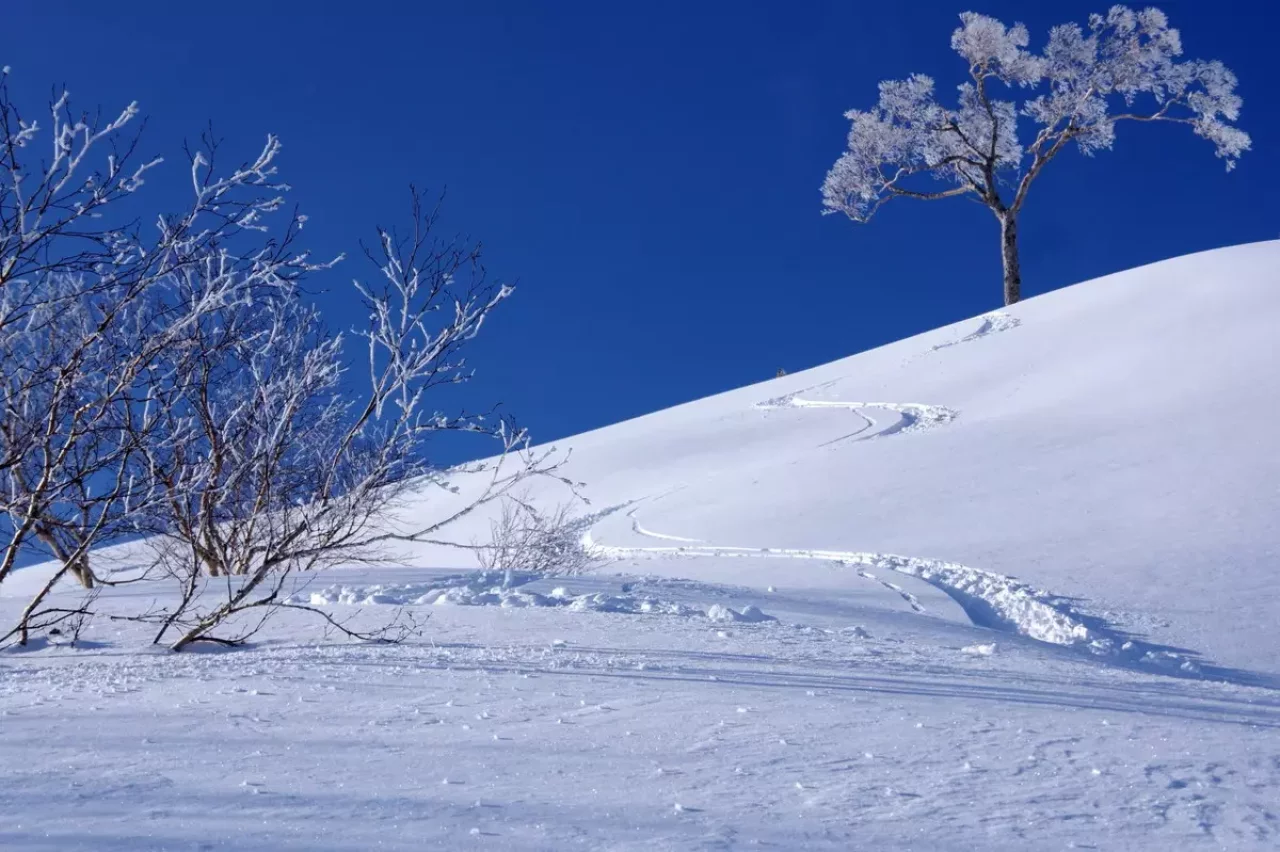 2020年の師走、早くも豊富な雪に覆われた新潟県は湯沢町のかぐら峰。HEXARボトルと共に登りました。