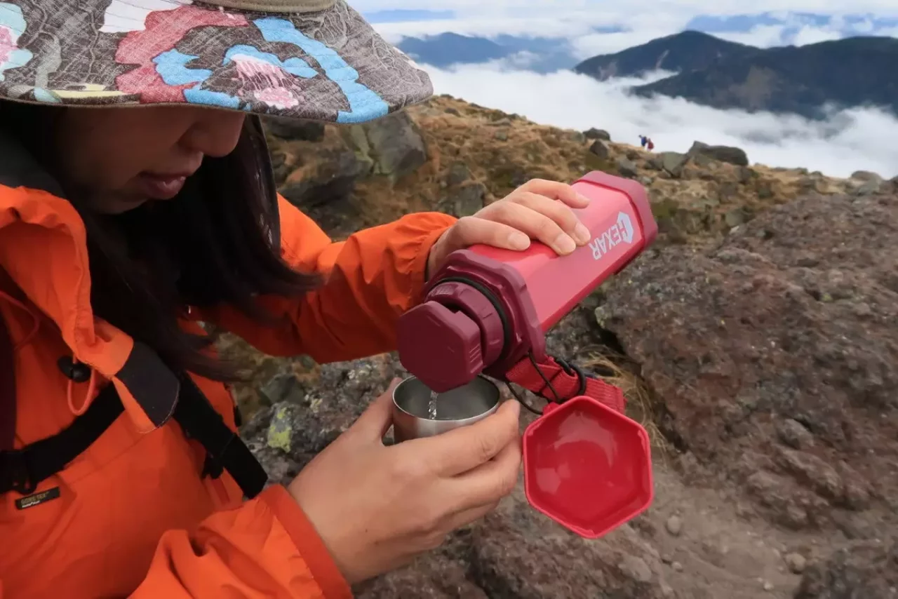 これまでの水筒といえば円柱形が当たり前でしたが、握れば滑りやすく岩場で不注意に置けば転がり落ちます。 HEXAR独自の六角形はそんなリスクを無くすための形、厳しいフィールドでの安心感が違います。