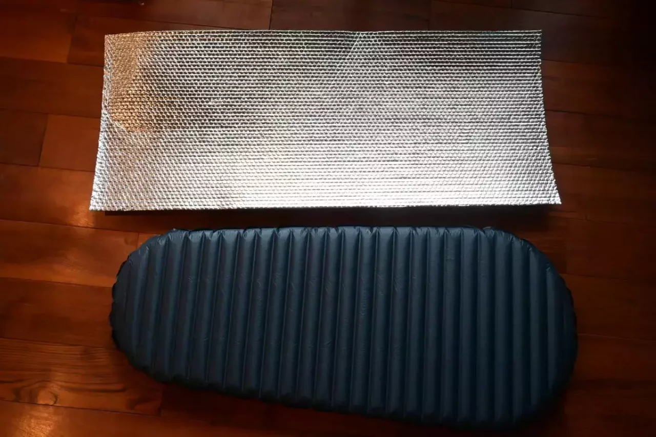また肌寒い時期のテント泊で夏用のテントマットに追加するような形でアストロフォイルを活用することで地面からの冷気を感じにくくすることができます。