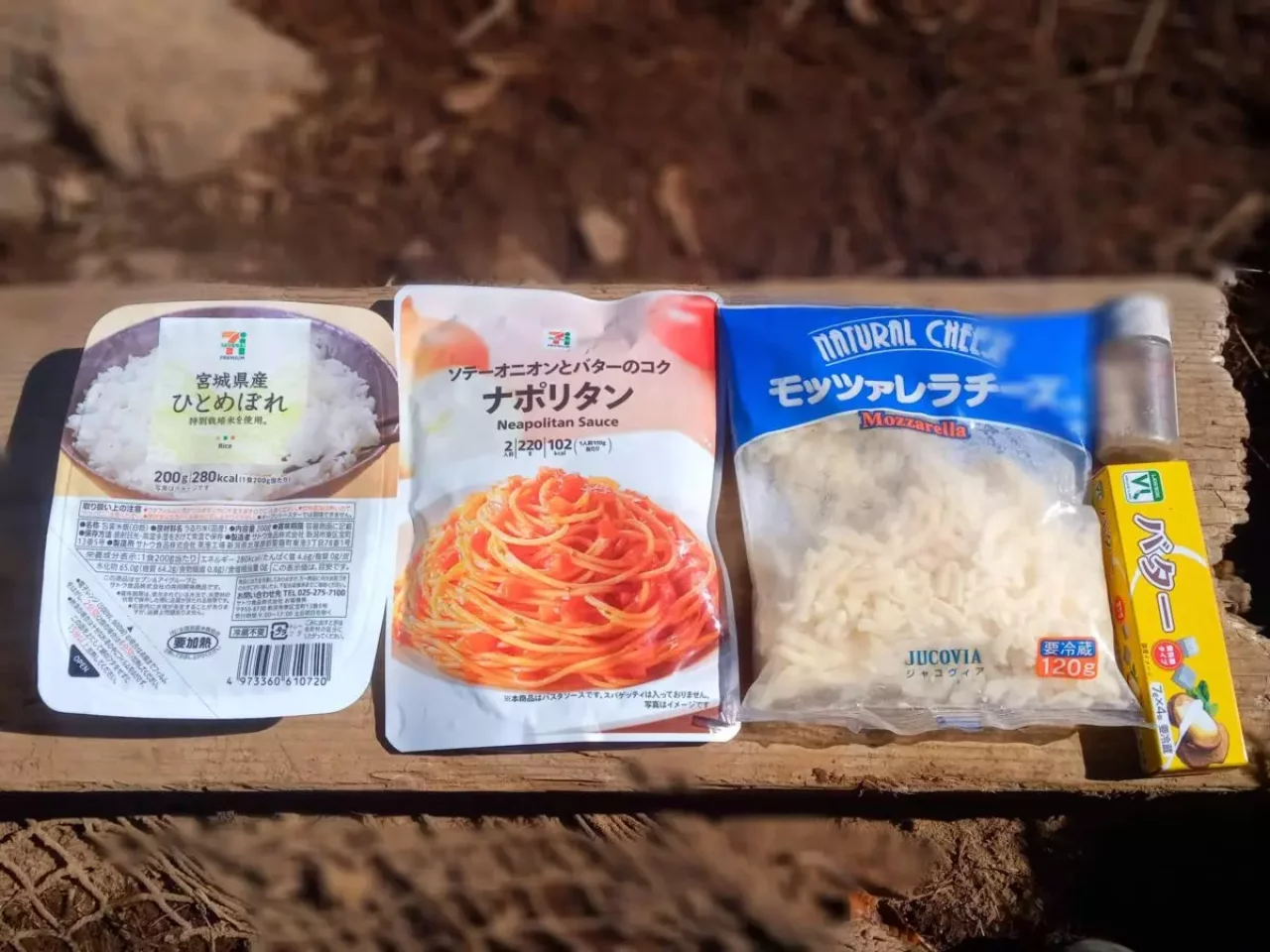 ※今回は加工済食品の中では安価なものを使用していますが、アルファ米やフリーズドライのソースを使えば、より軽量化してリゾットを作ることが出来ます。