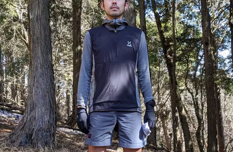 春先など少し肌寒い時にベースレイヤー1枚で行動すると、思った以上にお腹が冷え調子が悪くなることもあるのですが、このベスト1枚あれば、お腹を冷やさず熱も排出してくれ、ベースレイヤーやウインドブレーカーなどとの干渉もないためにレイヤリングしやすい1枚です。熱くなれば胸元のジッパーを開くことで大変涼しく行動できます。
