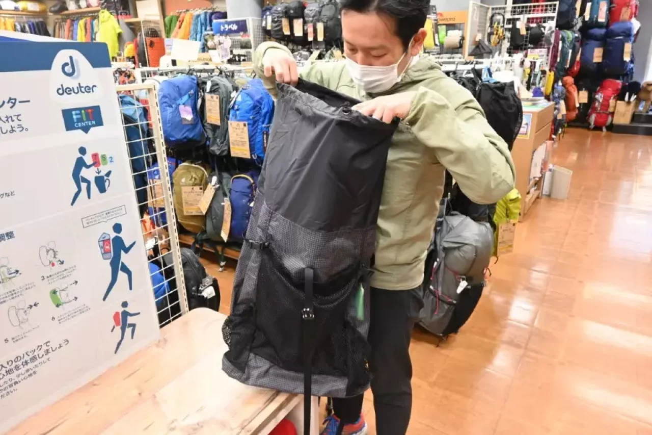 今実際に使用しているザックが従来型の背面パットやフレームなどがしっかり作られているモデルだった場合、軽量に特化した(いわゆるUL系と呼ばれる)ザックを背負うと違和感をもつ方が多くいらっしゃいます。なぜならそれらのザックは荷物のバランスを取るフレームや背面、ショルダーのパットを簡素化もしくは省略して軽さを出す工夫がされているものが多いからです。もしそこが気になる場合は、いきなり色々そぎ落とした超軽量なザックを背負うのではなく、荷室に関しては素材、構造共に簡素化して軽さを出しつつもショルダーパットや背面フレームなどはしっかりと作られた、背負い心地と軽量化を両立させたモデルを選ぶと良いと思います。