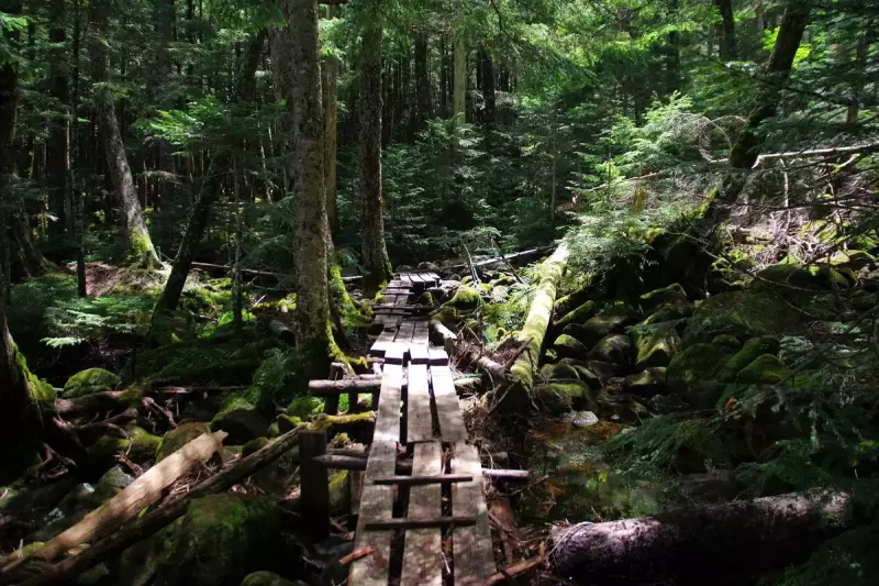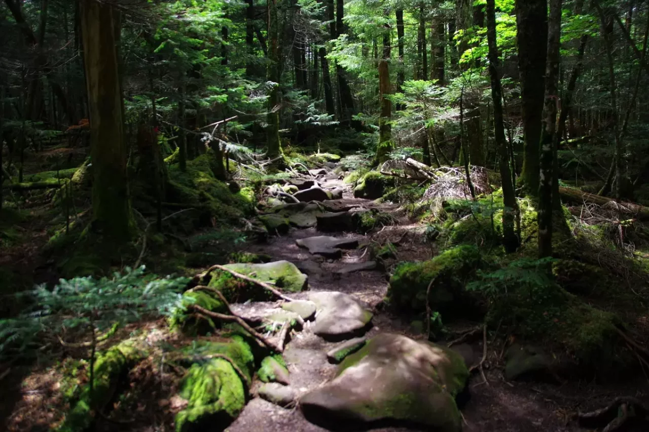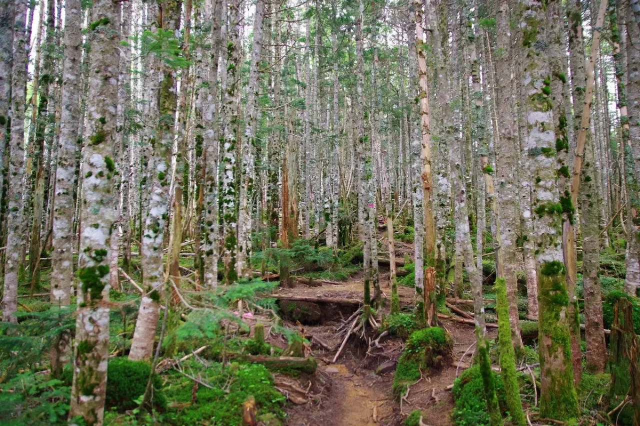 夏でも薄暗い樹林帯。北八ヶ岳で苔と水辺を楽しむ