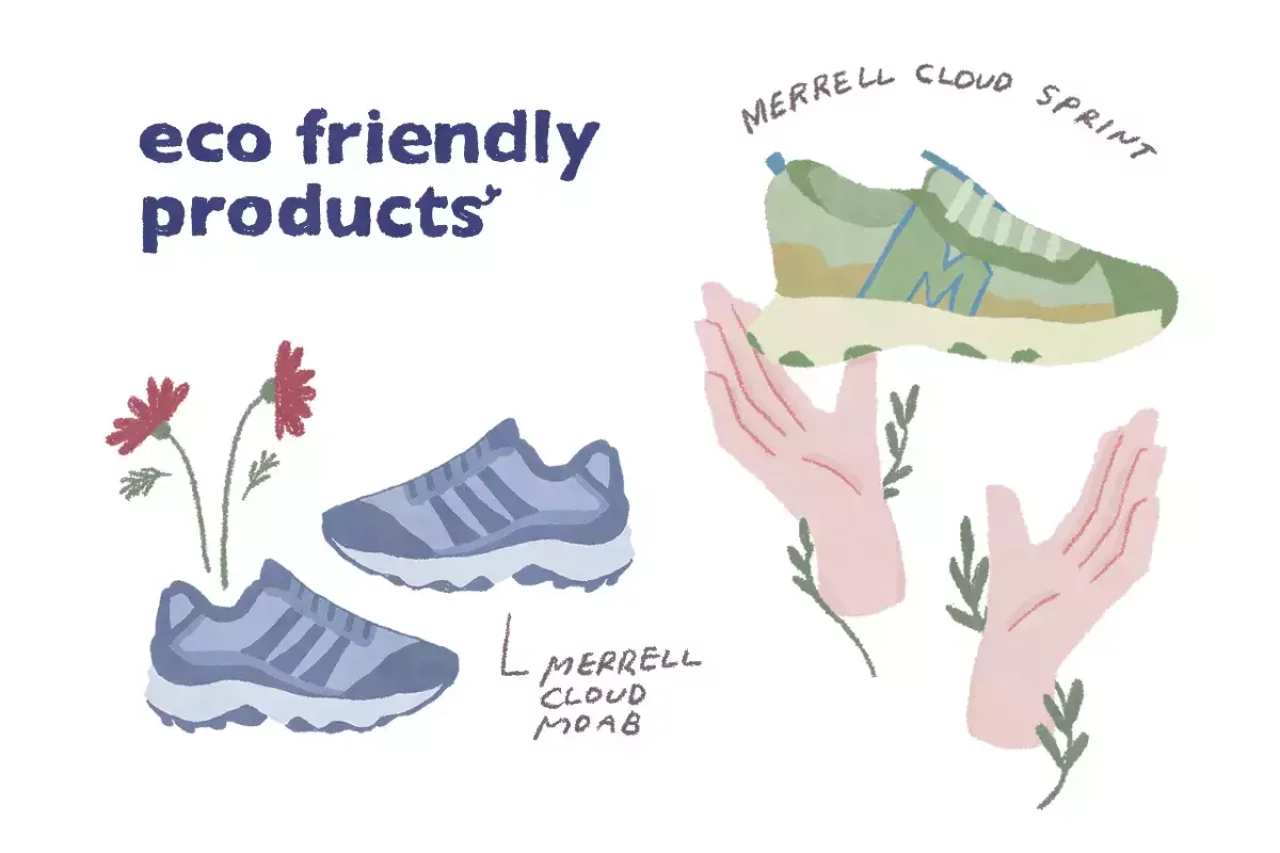 アメリカ発のアウトドアブランド「MERRELL」。環境への負担を低減するため、リサイクルが可能な素材を独自で開発しているんだとか。