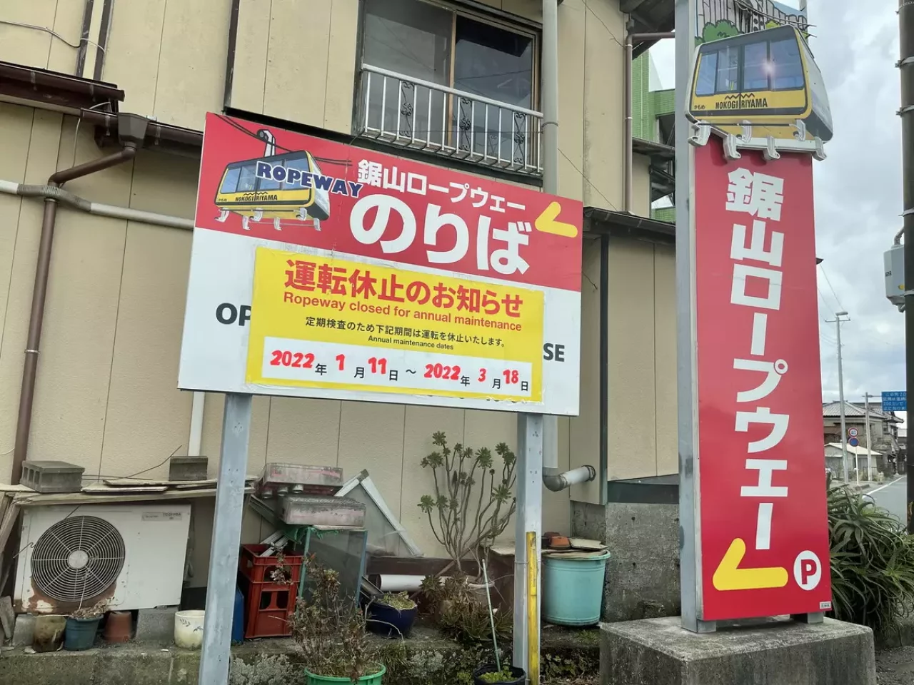 鋸山ロープウェイは上の写真のように定期検査で運休を休止する期間があります。登山者が少ない寒い季節に行うことが多いようですが、事前に確認をして出かけるようにしましょう。