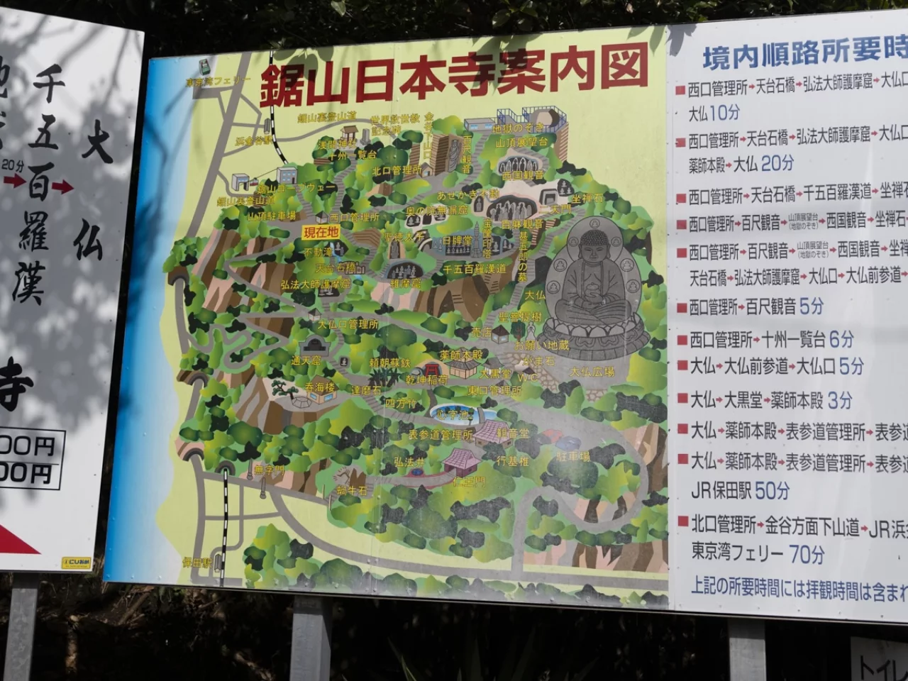 日本寺には表参道エリア、中複エリア、大仏広場、羅漢エリア、山頂エリアの五つに分類されそれぞれに観光スポットがあります。