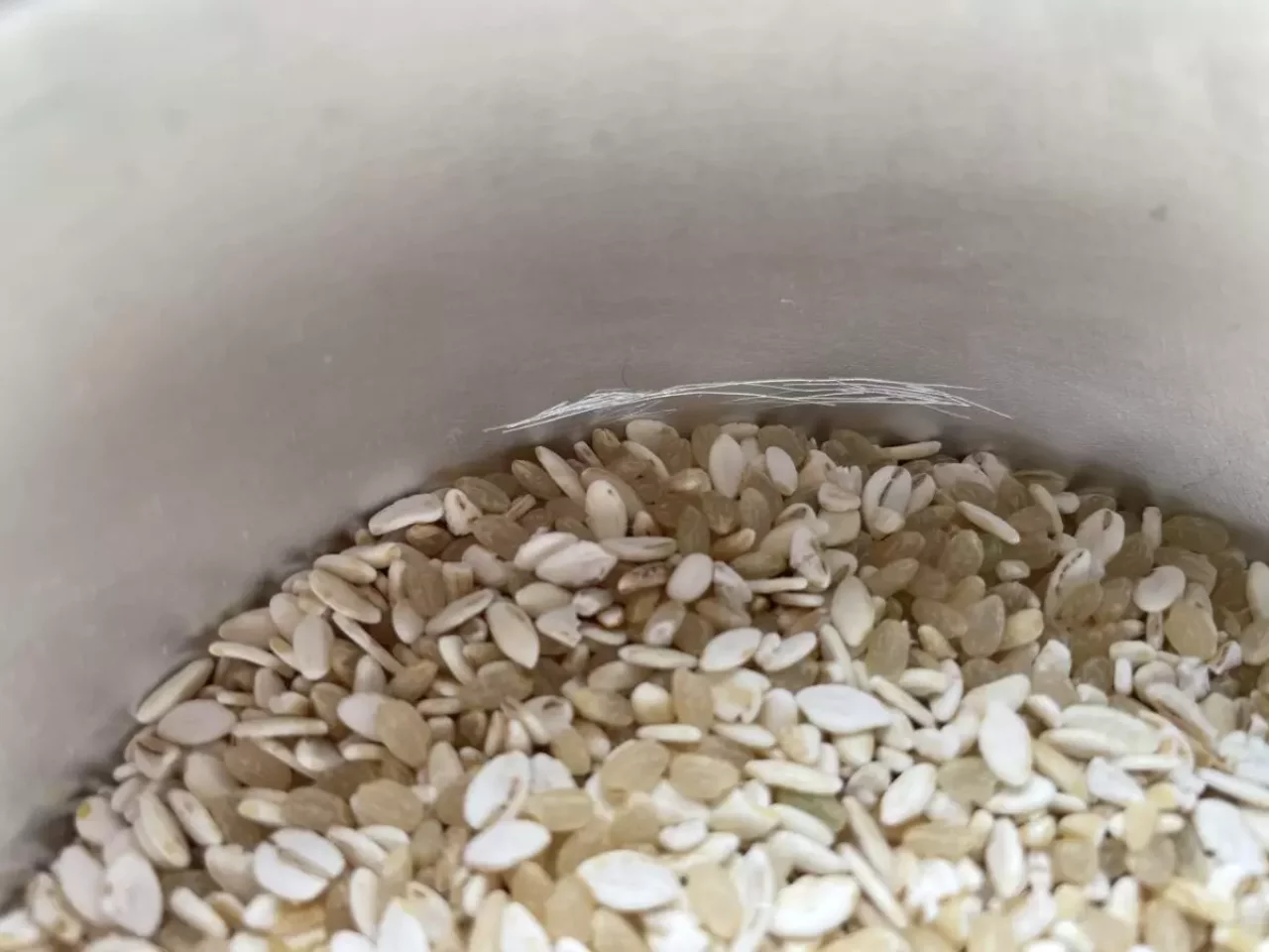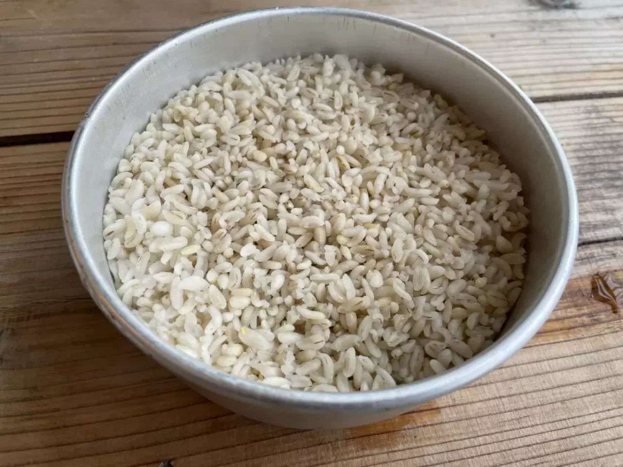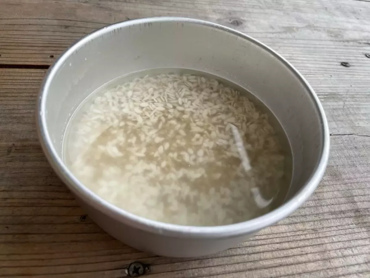 今回使用したのは玄米と麦ともち米のブレンドです。水を入れたらしっかりとお米に水を含ませます。このステップを怠るとお米に芯が残ってしまうので注意をしましょう。お米に水を含ませる時間は約20分です。