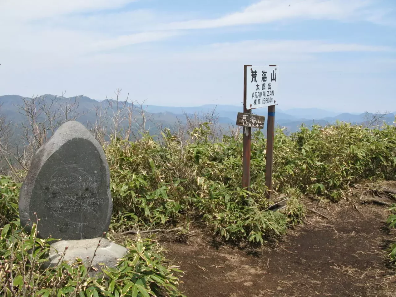 荒海山は日本300名山に数えられる山で標高1581mで東に二等三角点二等三角点があります。登山コースは1つで福島県側から伸びています。