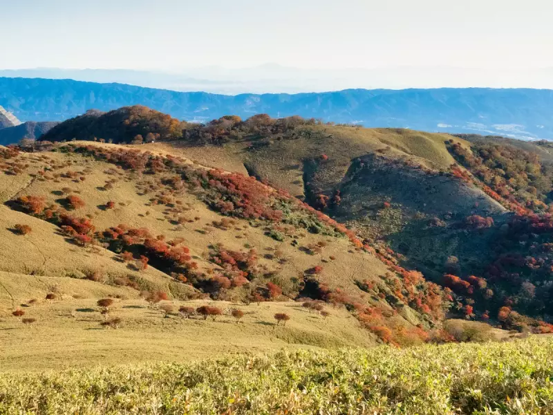 伊吹山の紅葉はカエデ、ブナ、カンボクなどの木々の紅葉が美しく、アクセスも良好なので手軽に紅葉登山を楽しめます。テラス駐車場から山頂までは3つの登山道があり、長くても片道1.5km、短いものだと500mと初心者も安心して登頂可能です。