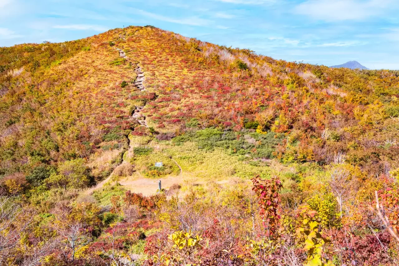 国見岳、普賢岳周辺の斜面の色づきも美しく、大パノラマの景色とともに紅葉登山を楽しめますよ。