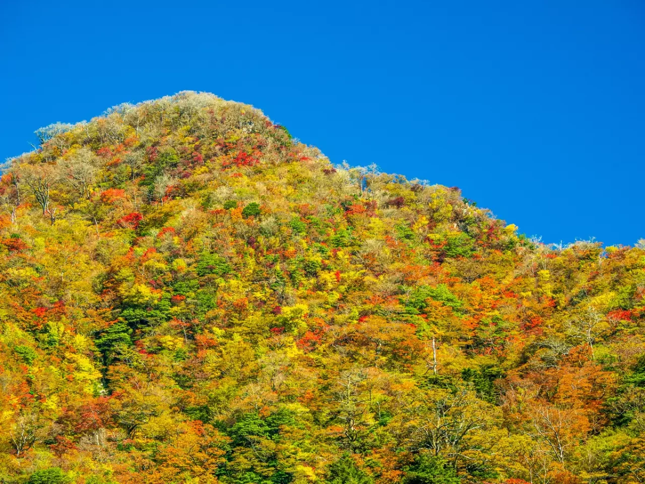 島根県の中央部に位置し日本二百名山にも名を連ねている三瓶山は、例年10月中旬頃より色づきが始まり、10月下旬ごろに見頃を迎えます。特に室ノ内池は水面に映る紅葉が美しく、神秘的な景色を楽しめます。