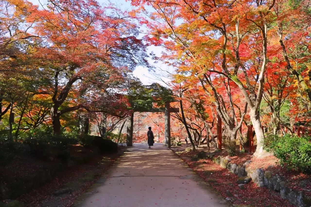 大宰府市の北東部に位置する宝満山は、古くより霊峰として崇められてきました。宝満山の麓にあり登山口にもなっている竈門神社では、約300本カエデやイチョウが色づき見事なグラデーションを見せてくれます。