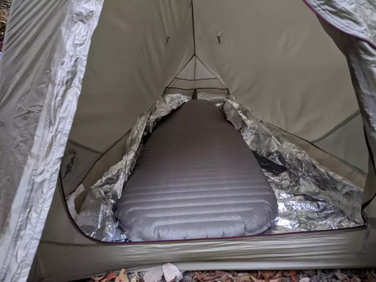 テント内外の温度差は前室で煮炊きを行うなどをしない限り、実はあまり変化がないと考えています。徐々に自分の息や熱などで暖かくなるんでしょうけど大きな変化はないように思います。風を遮る分暖かく感じるのが大きな原因だと考えています。なので気温差による結露よりも湿度による結露が大きな要因となると思うので、雨の可能性があるときは潔くダブルウォールに切り替えるのが懸命でしょう。