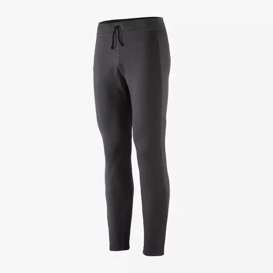 温かくてとても伸びるボトムスです。R1 コレクションの中でも素材の表面がつるつるとしているため、シェルパンツを重ねて履く時も、足上げの際に布地同士がひっかからない。シルエットはベースレイヤーほどタイトでないジョガーのようで、山小屋でうろうろする時、下山後の温泉も履いています。細身のスタイルが苦手な方は、ウィンドシェルのパンツを上に履く方法もあります。