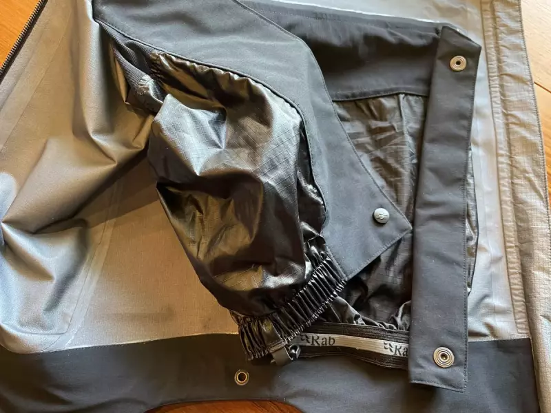 Rabのビブパンツには止水ジッパーが、左右の足の側面に着脱がしやすいように配置されています。これによってブーツを履いたままボトムスの脱ぎ履きができます。このジッパーは活躍するシーンが限られるので、個人的にはより軽量なビブパンツに仕上げるためにそぎ落としてもよかったのかなと思います。
