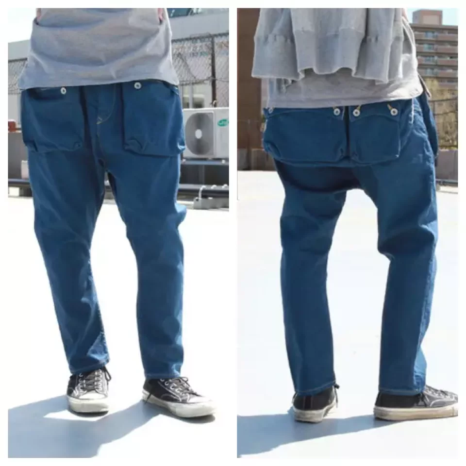 サルエルデニムパンツは4つのポケットが付いており履き心地を良くするためにストレッチ素材のデニム生地を使用しています。練り物産地岡山の工場にて仕上げたこだわりのある作りで履けば履くほど味が出ます。アウトドアシーンでナイフやライト、スマホや財布、様々なものをポケットに収納できて、使いたいときにすぐに取り出すことができるパンツはアウトドアシーンを快適にしてくれます。