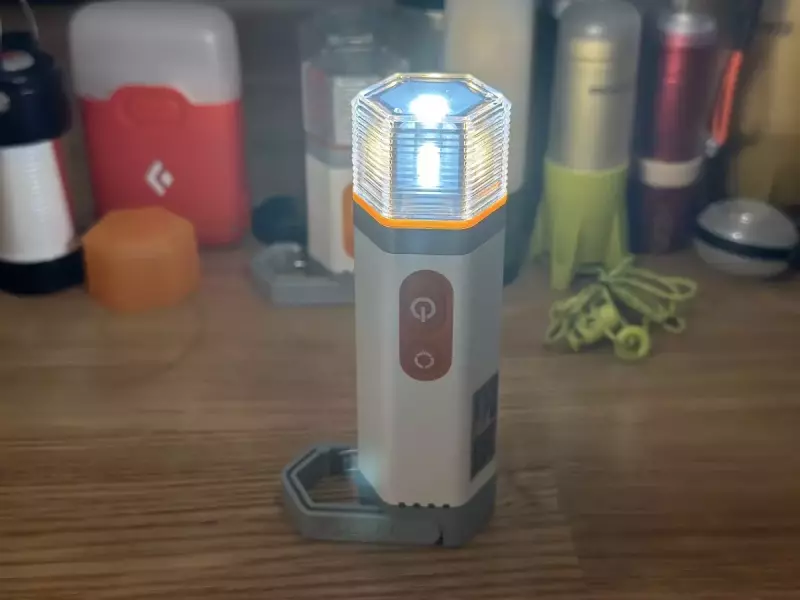 手のひらに収まるほどのコンパクト性と軽量性を備え、点灯時に電源ボタンの長押しで無段階の明るさ調整が可能な非常に使いやすいゴールゼロのランタン。