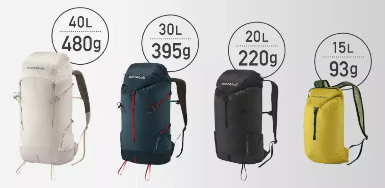 4種類のサイズ展開で、それぞれで圧倒的な軽量化を実現している。モンベルオリジナルシェル素材「バリスティック®ナイロン」を使用し、軽量性だけでなく強度も兼ね備えたバックパックに仕上がっている。