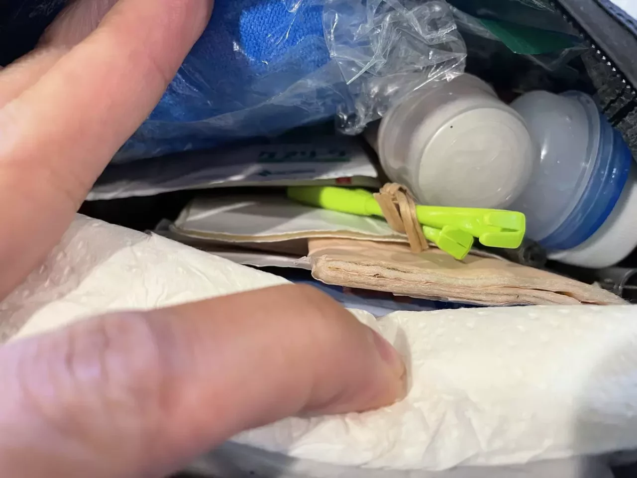 ザックや着用していたウェアにマダニがついている可能性もあるため、車の中や家の中に持ち込む前に、ガムテープを使って服やザックについたダニを取り除く方法も効果的です。