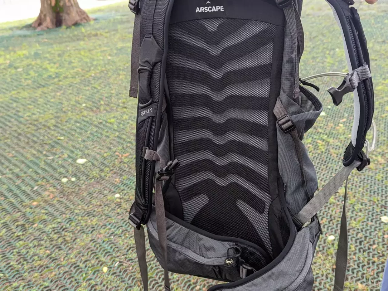 背面にはエアスケープサスペンションを採用し、通気性があり体の近くに荷重を位置づけることができます。