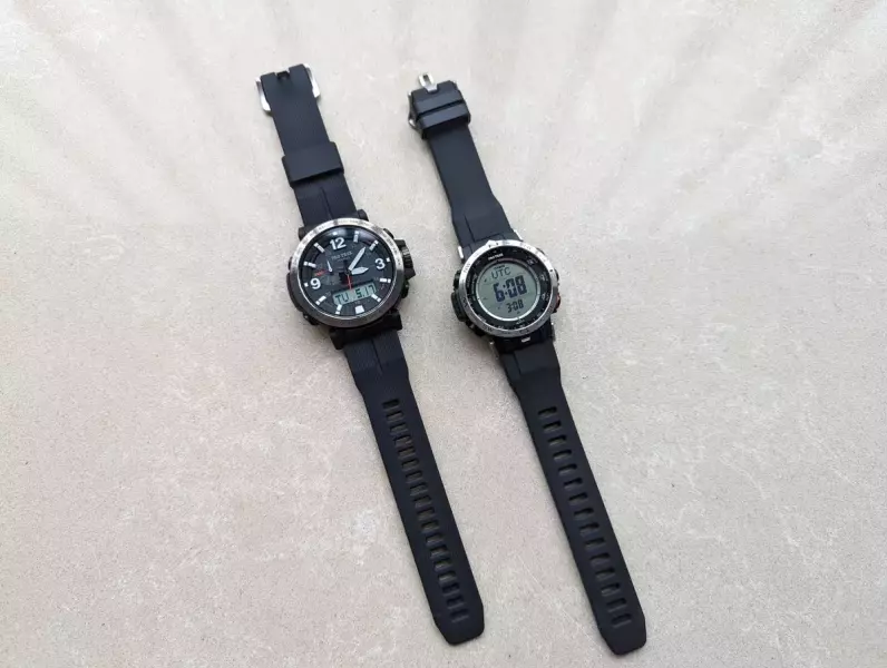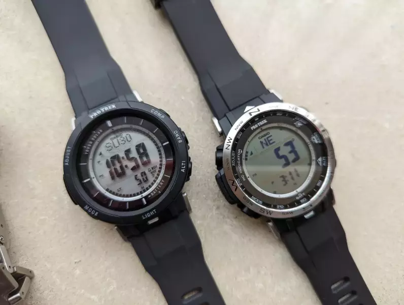 登山用のカシオプロトレックを大別するとデジタルとアナログの表現方法があります。それぞれ高度、方位、気圧を確認することができます。