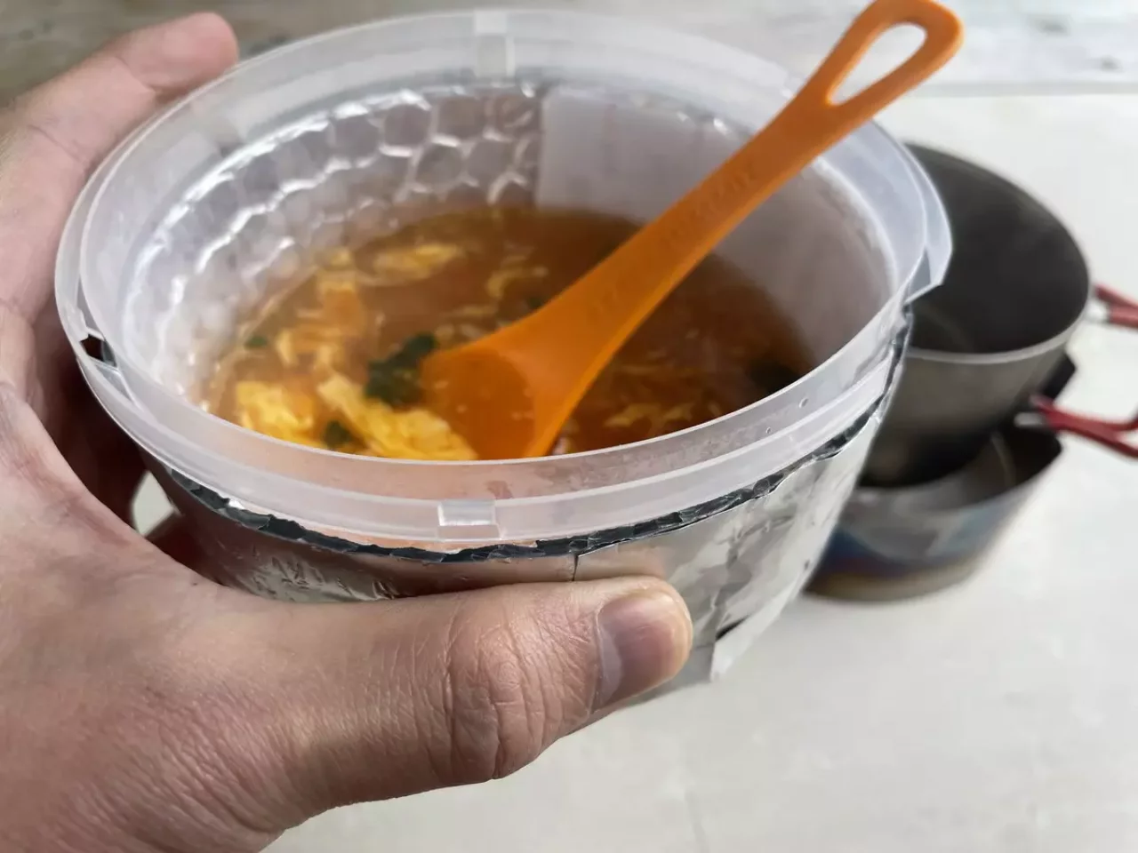 そして風防ケースを持っても手が熱くならない、さらにカップラーメンを入れて食す時の保温カップにもなるフーボーコジーを使えばスープを飲んだり、ラーメンを作り食すのにも便利なお椀を手に入れることができます。