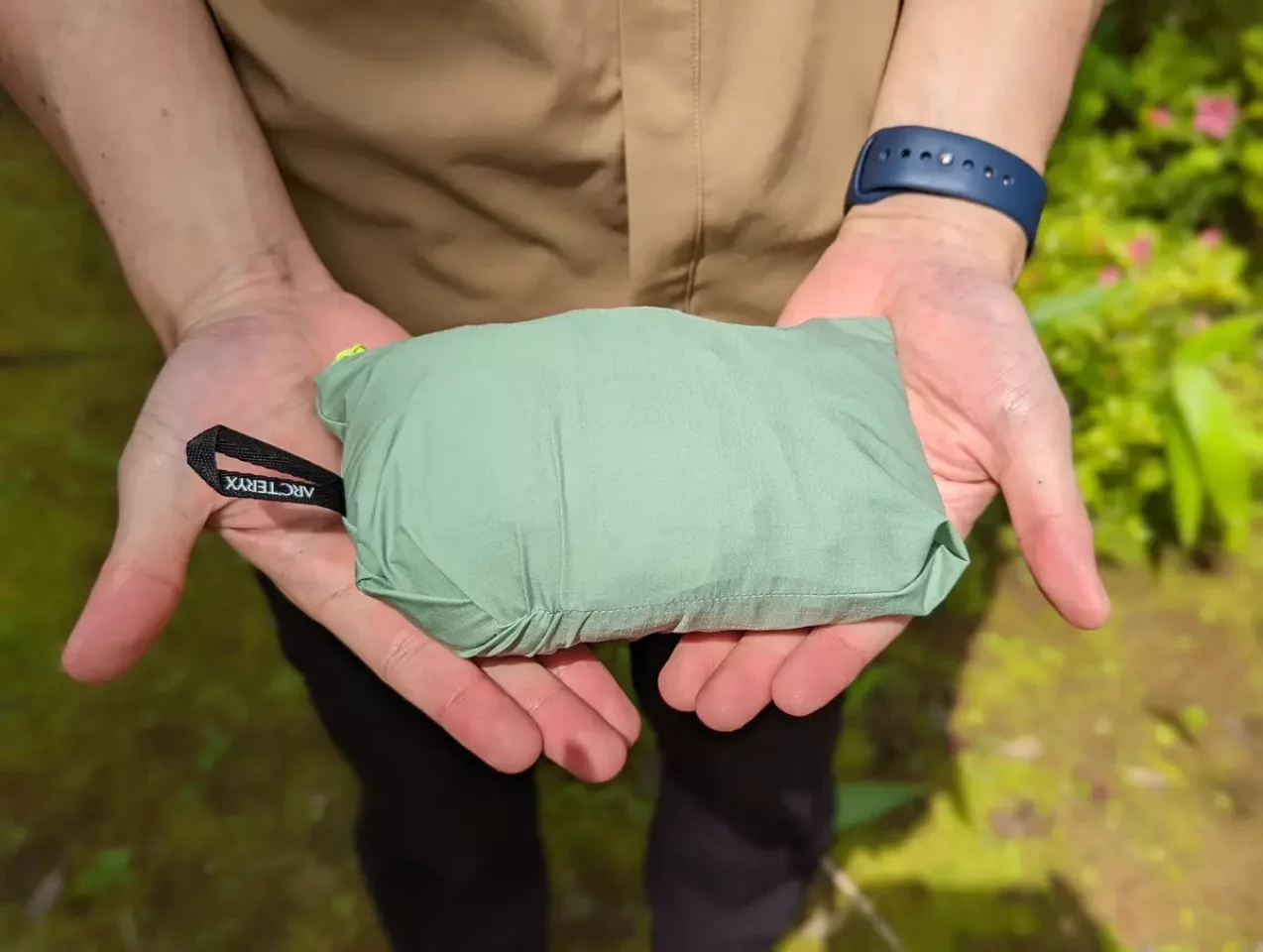 このチェストポケットにパッカブルすることができます。ループがあるので、カラビナをつければザックなどに取り付けておくことができます。