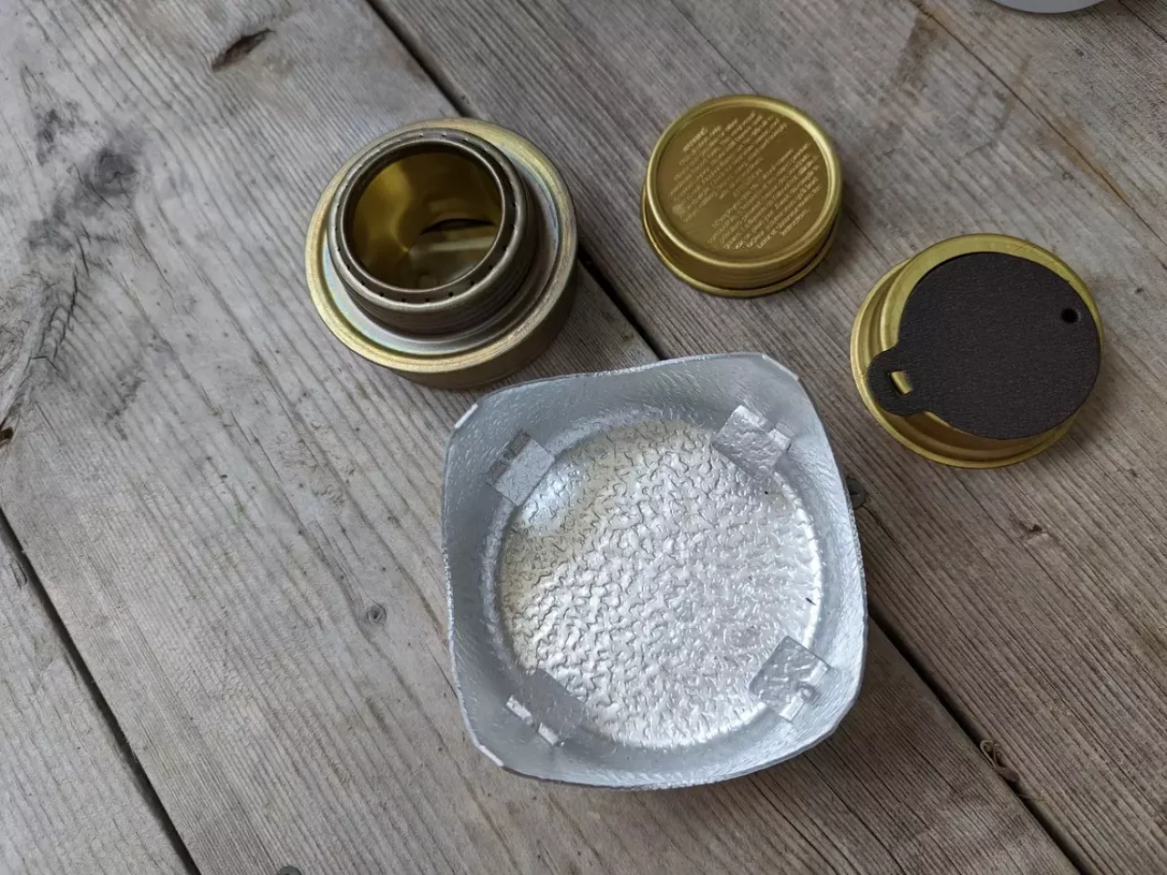 アルコールストーブはスクリュー式のタンク用の蓋と火力調整の蓋がセットになっています。このアルコールバーナーは約50年間の長い歴史を持ち、非常に優れた機能を持ち合わせています。