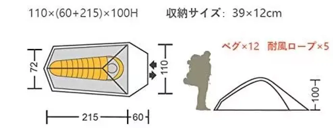 総重量1060gで、価格が1万9800円という驚くスペックのテントです。入り口は長辺についており、しかも左右に入り口と前室が備わってるため、多くの荷物をインナーテント外に置いておくことができます。