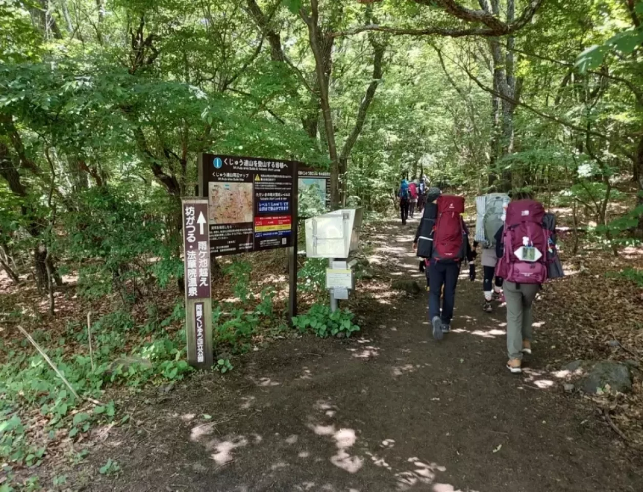 長者原から坊ガツルまでは、綺麗に整備された登山道です。テン泊初心者の方にも安心なルート。樹林帯が多く、涼しいのもありがたい。この日も多くの方がテン泊装備で坊ガツルへ向かわれてました。