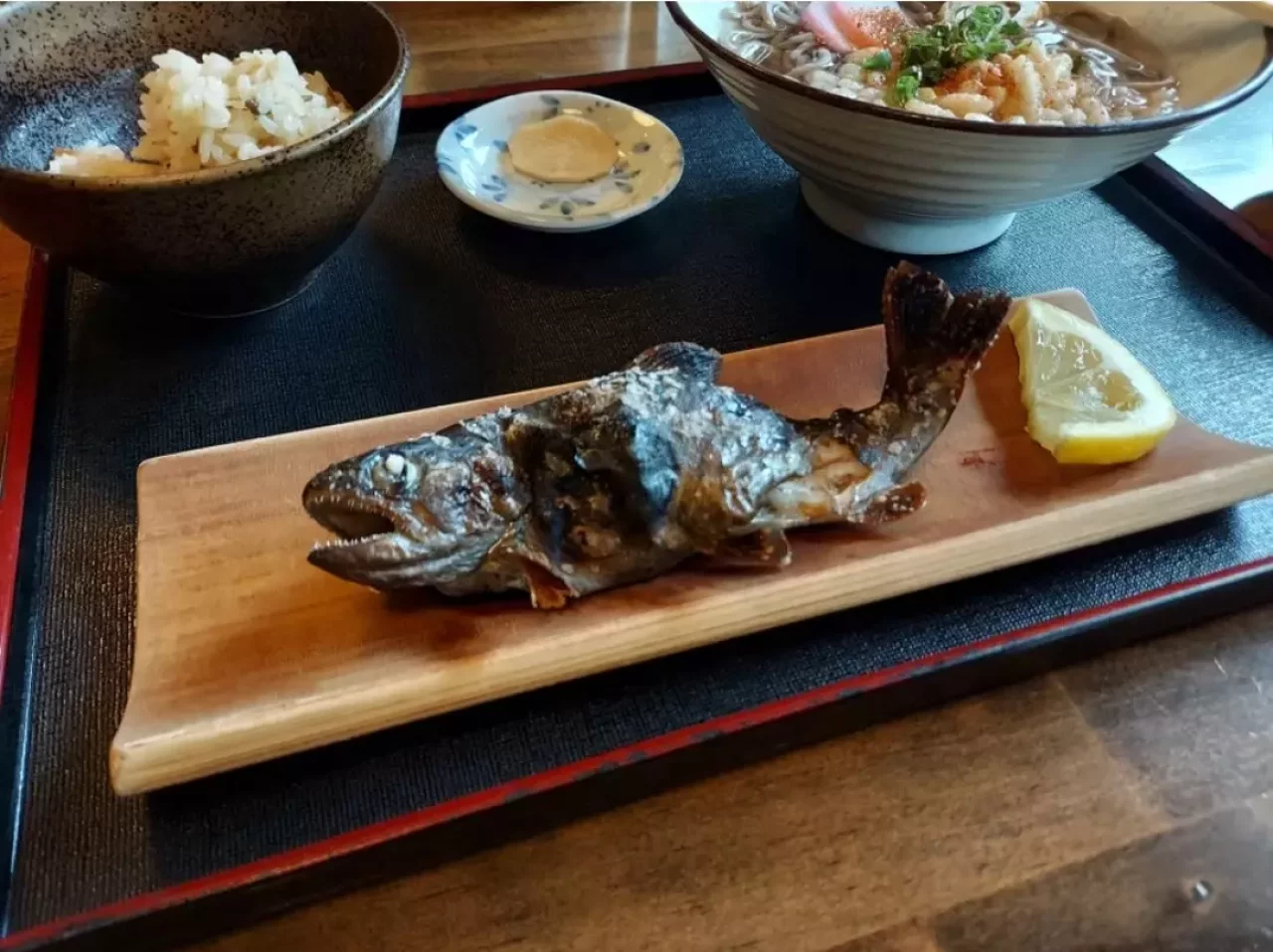 お昼は「渓流の味 たなべ」さんで「やまめの塩焼き定食 1300円」いただきました。手頃なお値段でオススメです。この日もどんどんお客さん来られてました。(予約可)