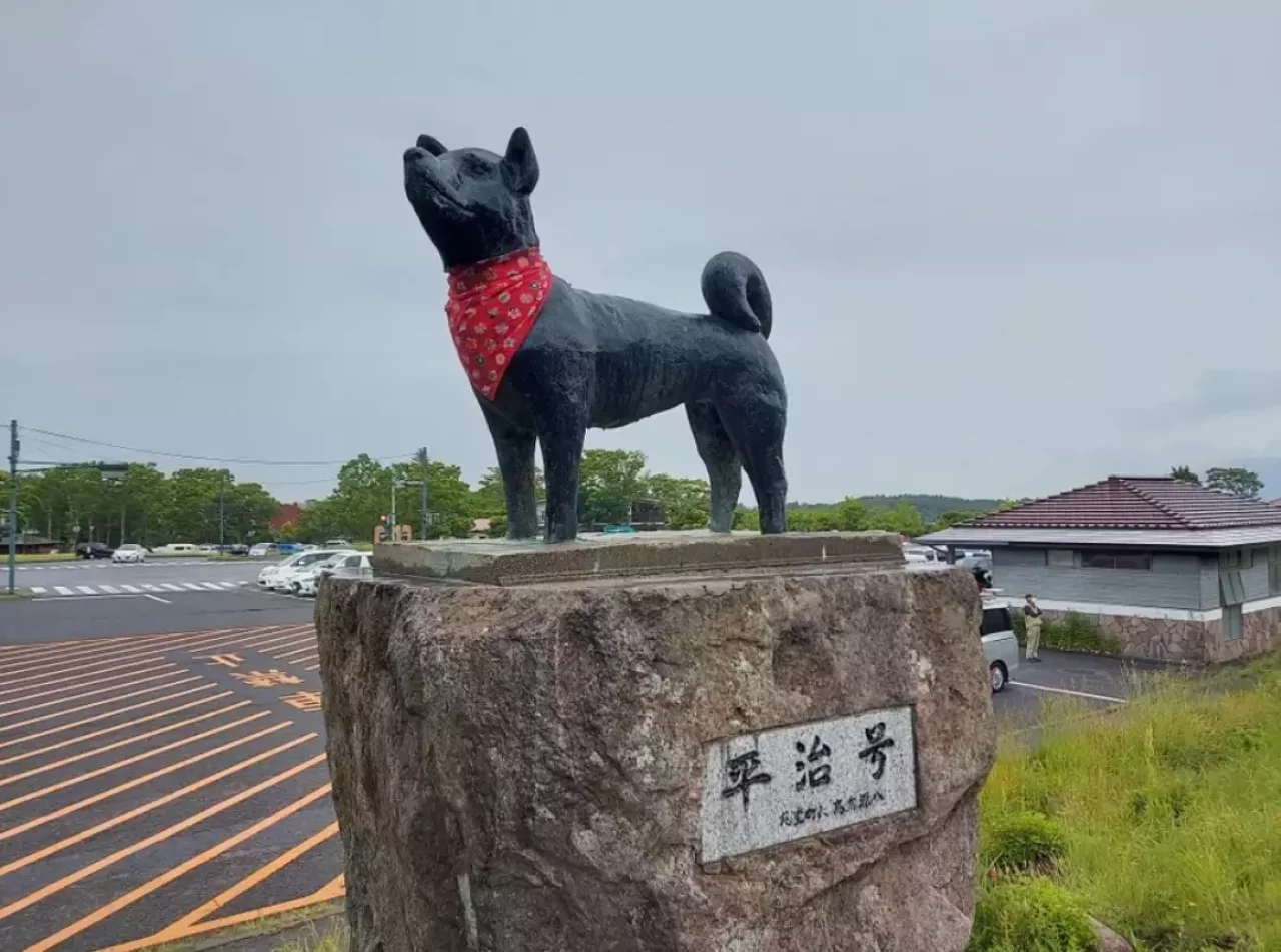 予定通り、雨に打たれる前に無事に下山しました。こちらはガイド犬の平治号の銅像です。長者原の登山口でハイカーを見守ってくれてます。映画にもなってます。