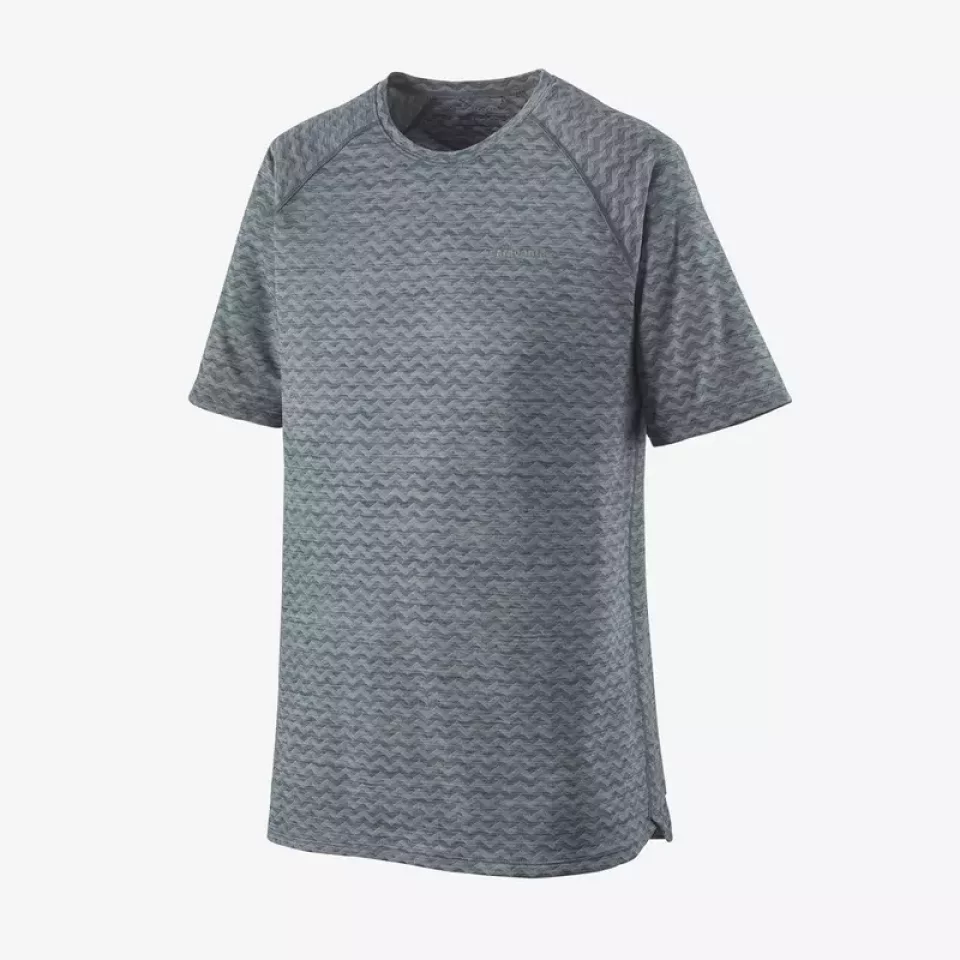 パタゴニアのリッジ・フロー・シャツは、通気性があり汗をかくことを事前に防ぐとともに、4オンスの程よい厚みの生地で、肌が冷たくなりづらく、夏場の高所登山やトレイルランニングに快適なTシャツです。